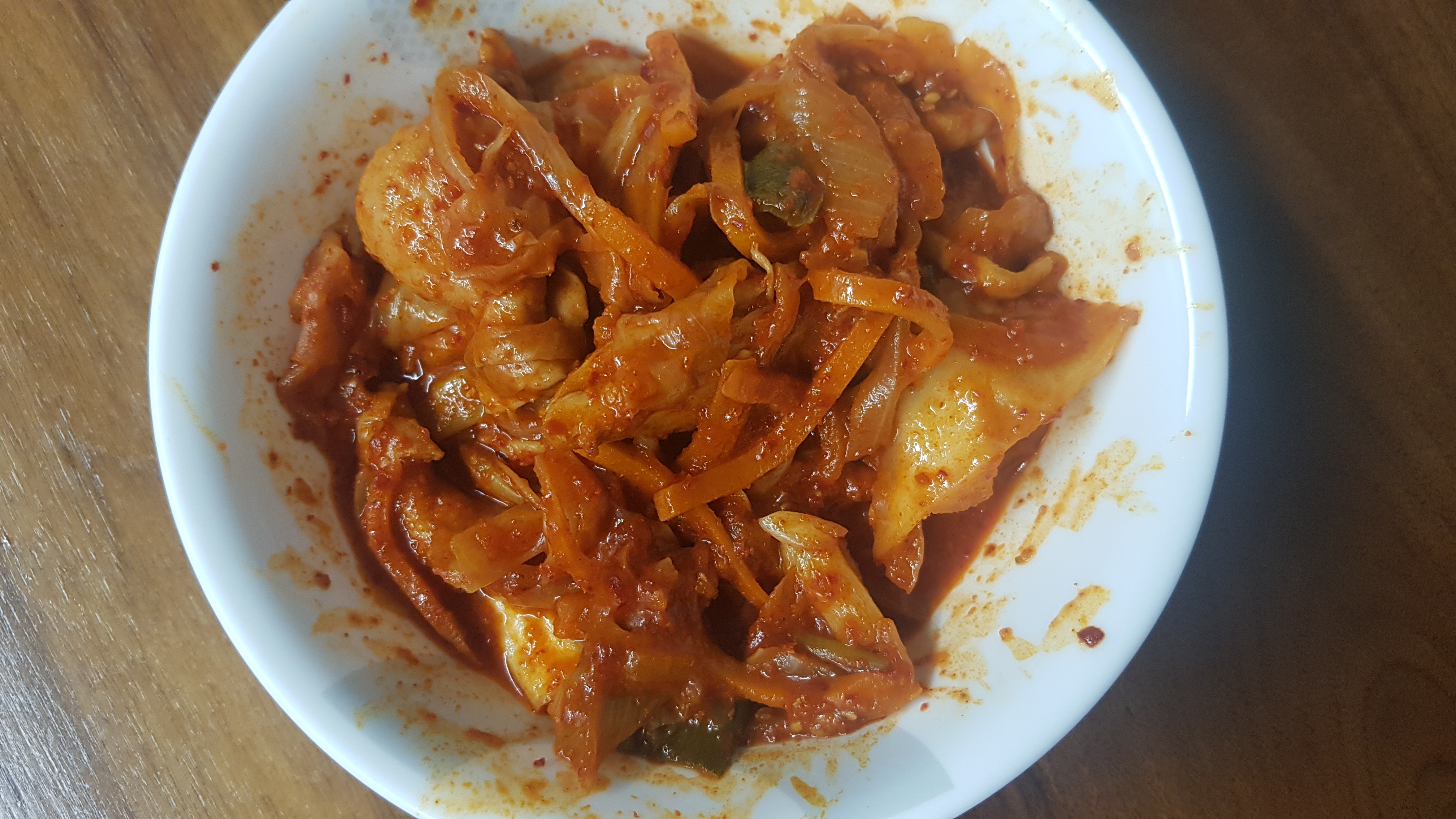 반찬을 담다가 골고루 담아지지 않았던듯합니다. 이부분 확인하고 연락 드리겠습니다. 정말 죄송합니다. >고추장 닭갈비요. 충격이네요. 아무리 뒤져바도 닭은 없고 죄다 양배추네요. 딱 3조각 발견이네요. 닭갈비가 아니라 고추장 양배추 찜이네요. 여지껏 다 만족스러웠는데 가장 이 반찬은 충격입니다. |